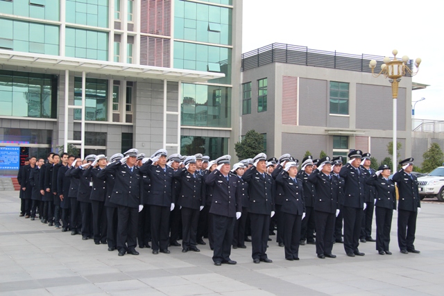 2017年1月3日9时,交警支队、禁毒局举行一月升旗仪式。交警支队、禁毒局全体民警、工勤人员和聘用人员参加升旗仪式。