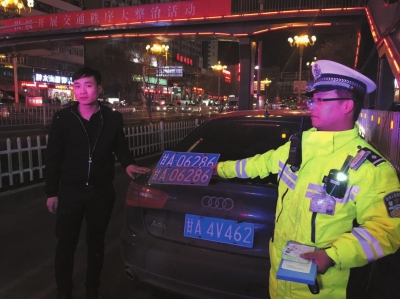 3月21日19时30分,系统再次报警,这辆黑色奥迪已下高速,在武都路出现,沿静宁路、南滨河东路到雁滩黄河大桥,又从那里返回。交通指挥中心呼叫沿线执勤民警注意拦截。20时10分,当该车行至双城门十字时,被执勤交警当场截获,该车已将号牌更换为甘A4V4**。李某声称,假车牌只是偶尔拿出来用一用。随后,李某和申某被城关交警大队民警控制,车辆被暂扣,等待进一步调查。